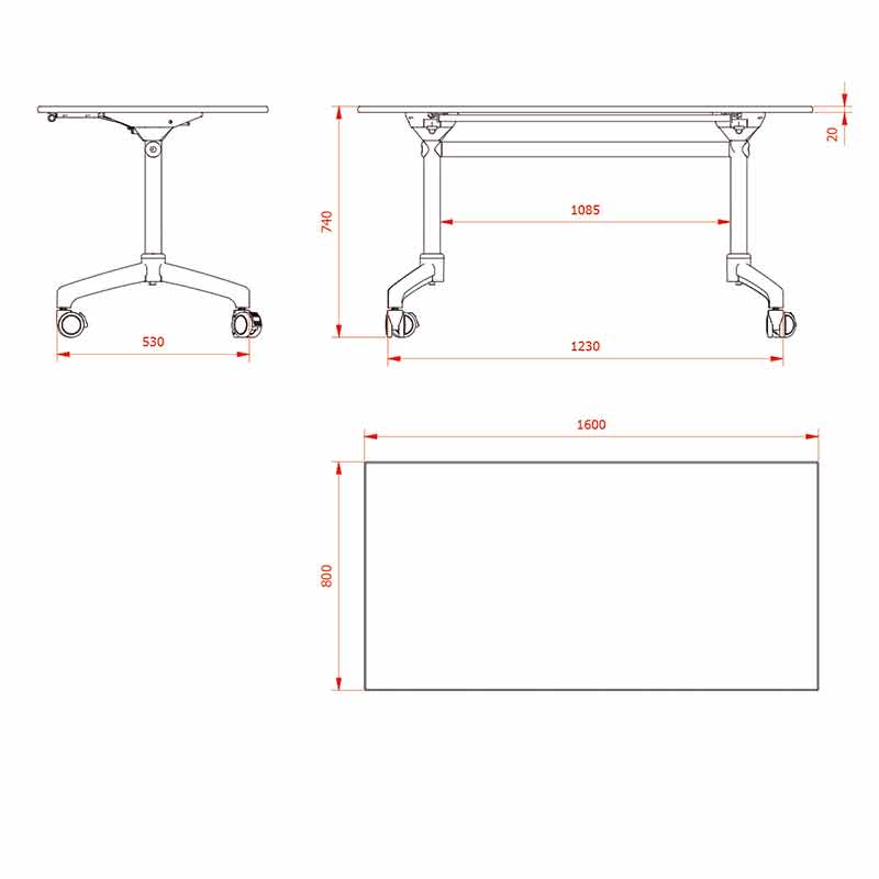 • Mesa abatible y apilable horizontalmente.