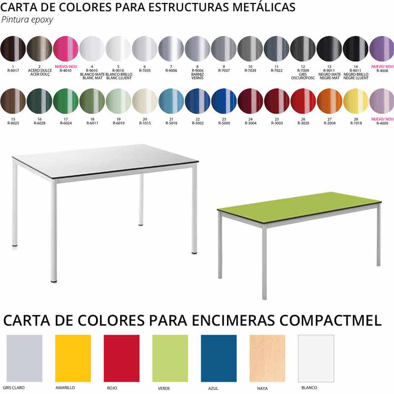 - Tablero en compactmel de 12mm, con cantos redondeados, disponible en 7 colores.