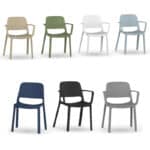 La silla de polipropileno NUKE con brazos, forma parte de nuestro catálogo de sillas para uso en centros educativos, aulas colaborativas, comedores escolares, aulas, bibliotecas, salas de profesores, y diferentes colectividades.