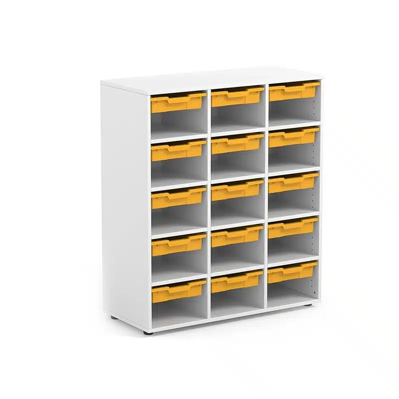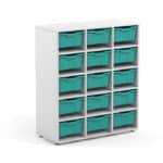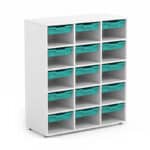 Armario escolar 15 huecos con 15 gavetas incluidas.