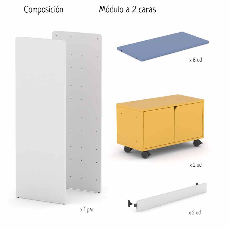 • 2ud módulo m2 -sin ruedas ref. UN-M2P / -con ruedas ref. UN-M2H-RH