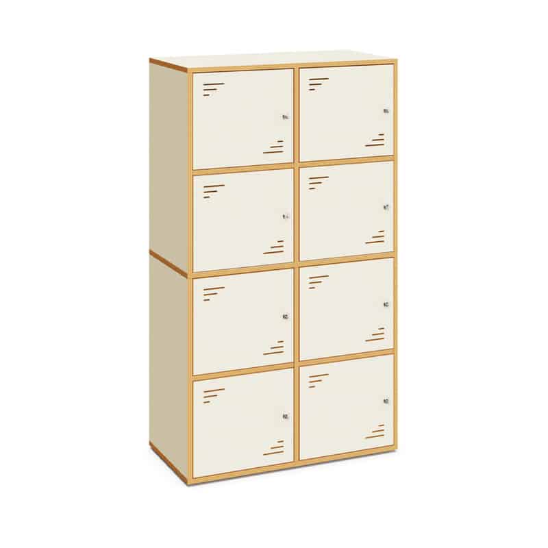 Taquilla escolar con ocho puertas.