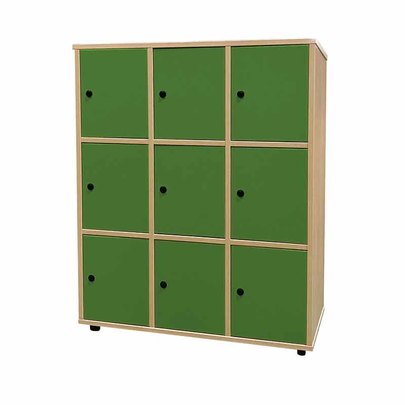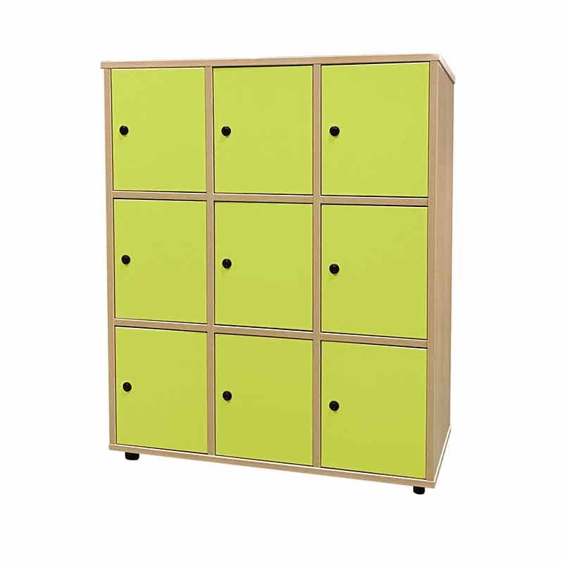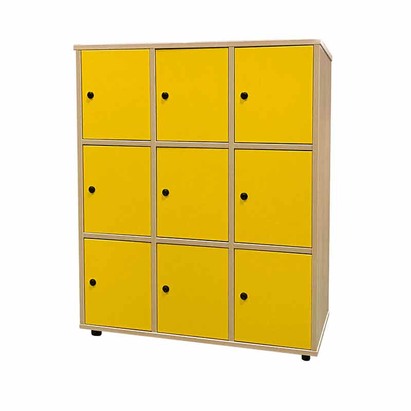 Este modelo de taquilla escolar melamina 9 puertas, está indicado para clases de Primaria, ya que al ser una taquilla escolar de melamina, y por su altura de 112 cm, es apropiada para esta etapa escolar.