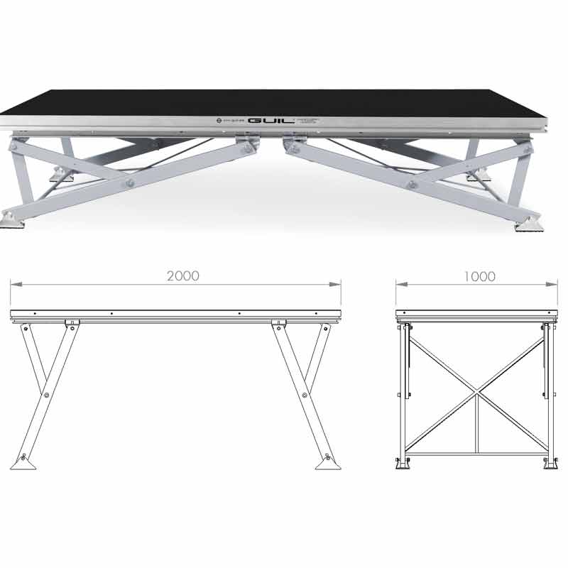 • Tarima de aluminio modular de alta resistencia de 200 x 100 cm.