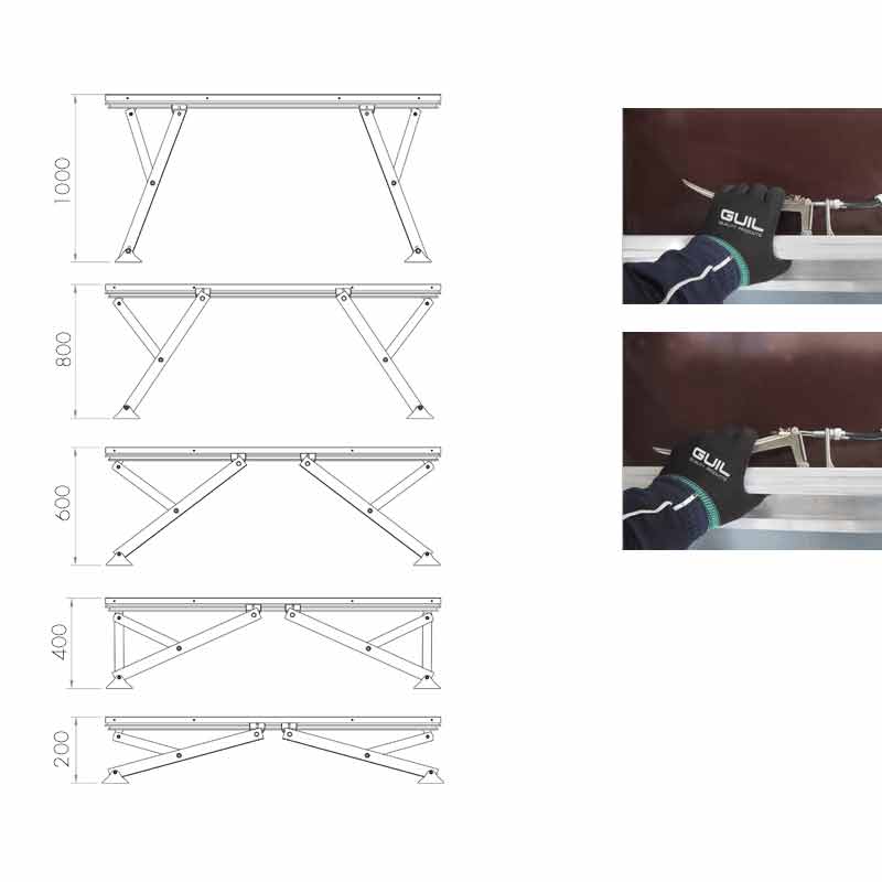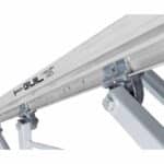Su diseño multifuncional de guía continua garantiza una rápida y fácil unión de tarimas entre sí y permite una sencilla y rápida adaptación de una amplia variedad de accesorios (pasamanos, escaleras de acceso, faldones, revestimientos, asientos, etc).
