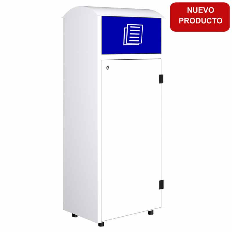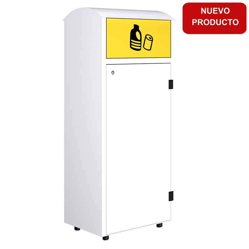 - Tapa frontal batiente con etiqueta del tipo de residuo.