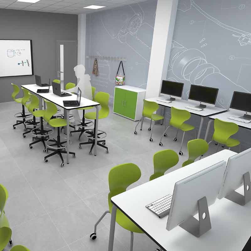 En nuestra página web, encontrarás diferentes modelos de mesas para aulas colaborativas y tradicionales, que puedes combinar con esta. Como por ejemplo: