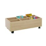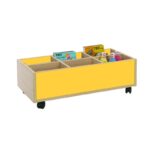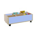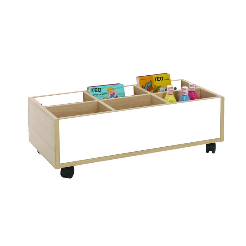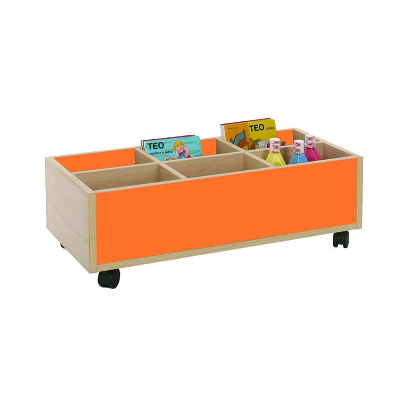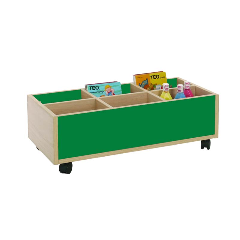 Este carro librería bajo esta compuesto de 6 casillas de almacenamiento. Ideal para equipar bibliotecas infantiles.
