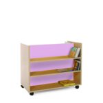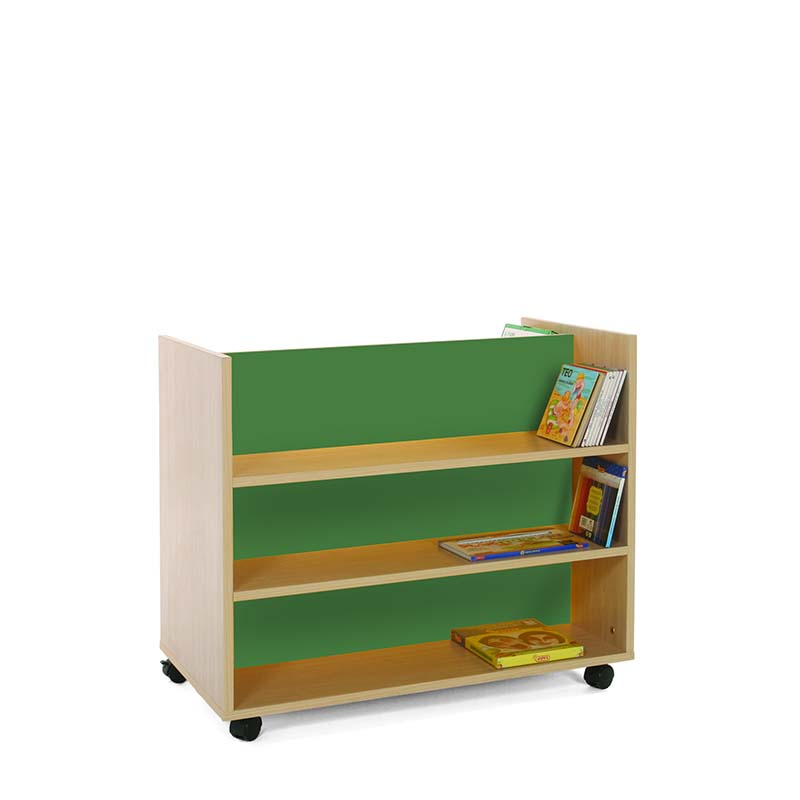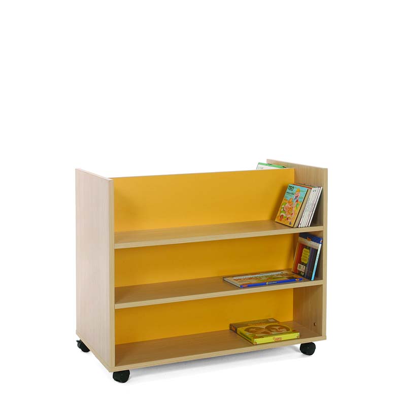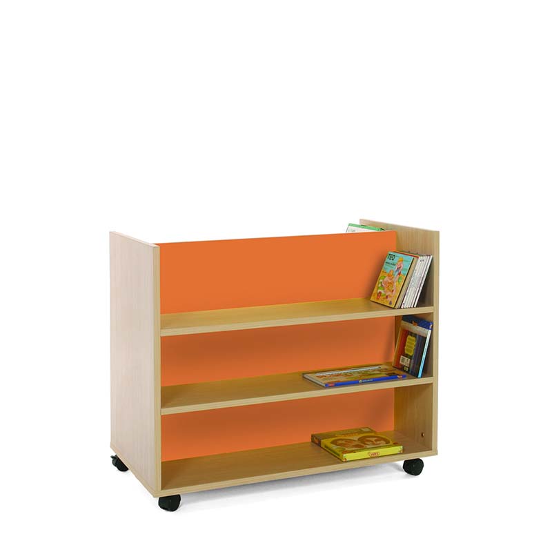 Carro librería doble frontal accesible por dos caras divididas por un separador central, cada cara dispone de tres niveles de almacenamiento.