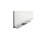 Pizarra blanca laminada de pared, con superficie de escritura laminada estratificada para rotuladores de borrado en seco. Marco de aluminio anodizado plata mate y esquinas con cantoneras decorativas redondeadas de plástico. Provistas de accesorios de fijación a la pared.