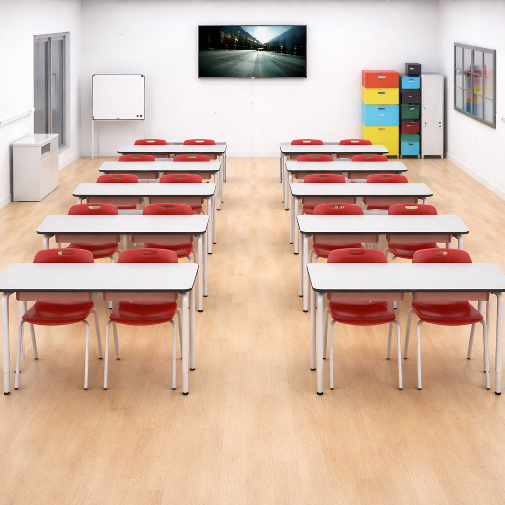 En nuestra página web, encontrarás diferentes modelos de mesas para aulas colaborativas y tradicionales, que puedes combinar con esta. Como por ejemplo: