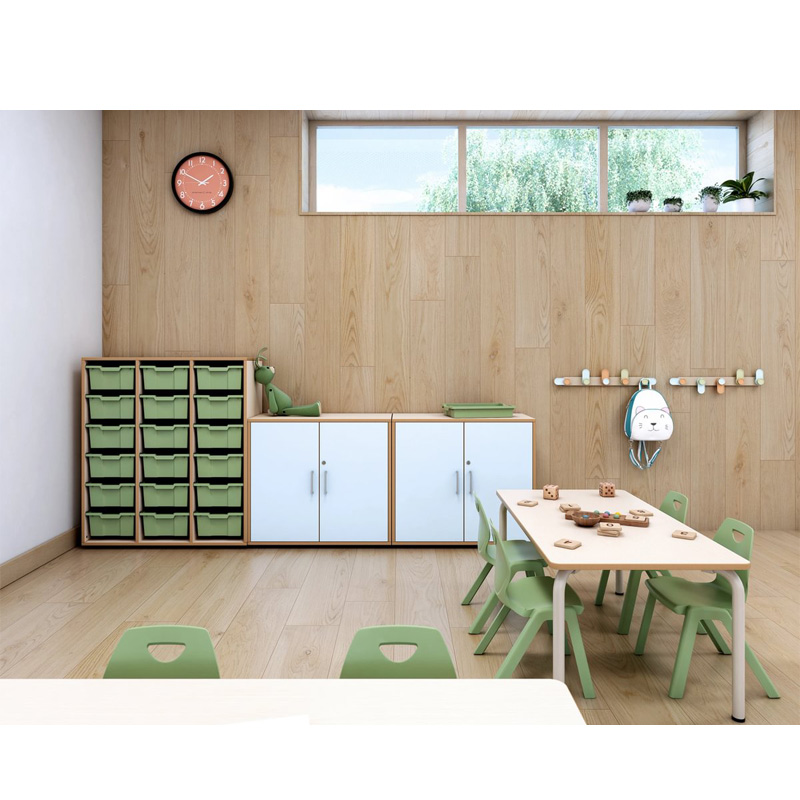En nuestra página web, encontrarás diferentes modelos de armarios para aulas colaborativas y tradicionales. Como por ejemplo: