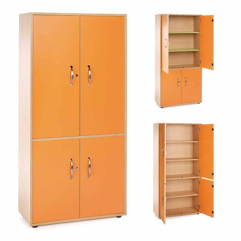 Este modelo de armario escolar Ada New, es un armario escolar de 80cm de altura de dos puertas con espacios interiores, forma parte de nuestro catálogo de mobiliario escolar. El cual, es ideal para equipar clases de aprendizaje cooperativo, al igual que aulas tradicionales y bibliotecas.