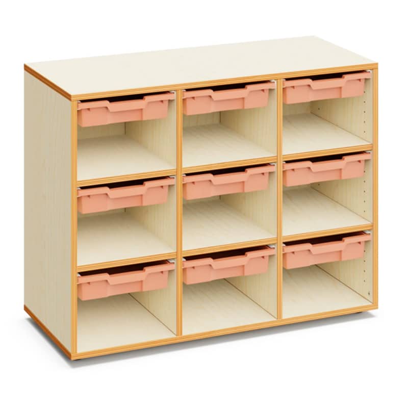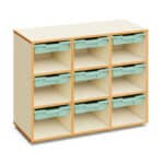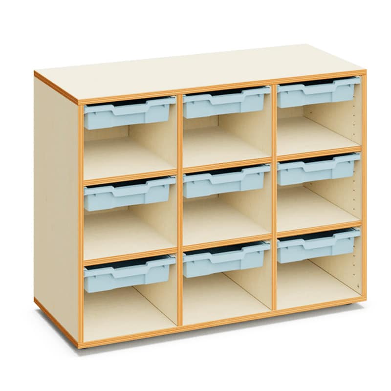 Armario escolar 9 huecos con 9 gavetas pequeñas.