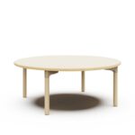 Mesa escolar infantil Yucca, de forma circular, fabricada en madera de abedul. Cuenta con un montaje fácil y sin tornillos. Su diseño es ideal para aulas y espacios educativos en escuelas infantiles.