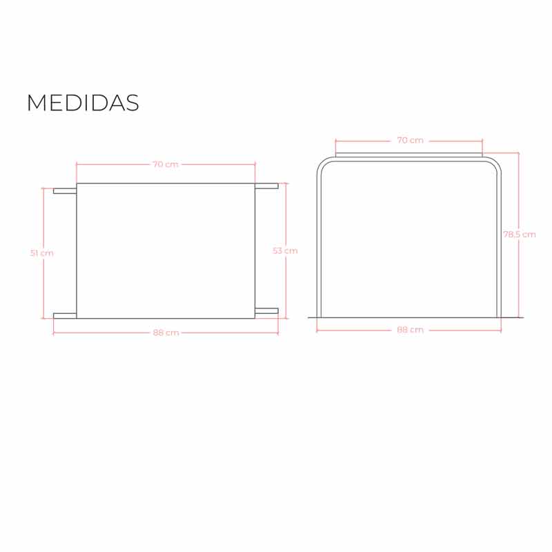 - Estructura metálica soldada (Ø30×1,5 mm). Pintada con pintura epoxi color a elegir