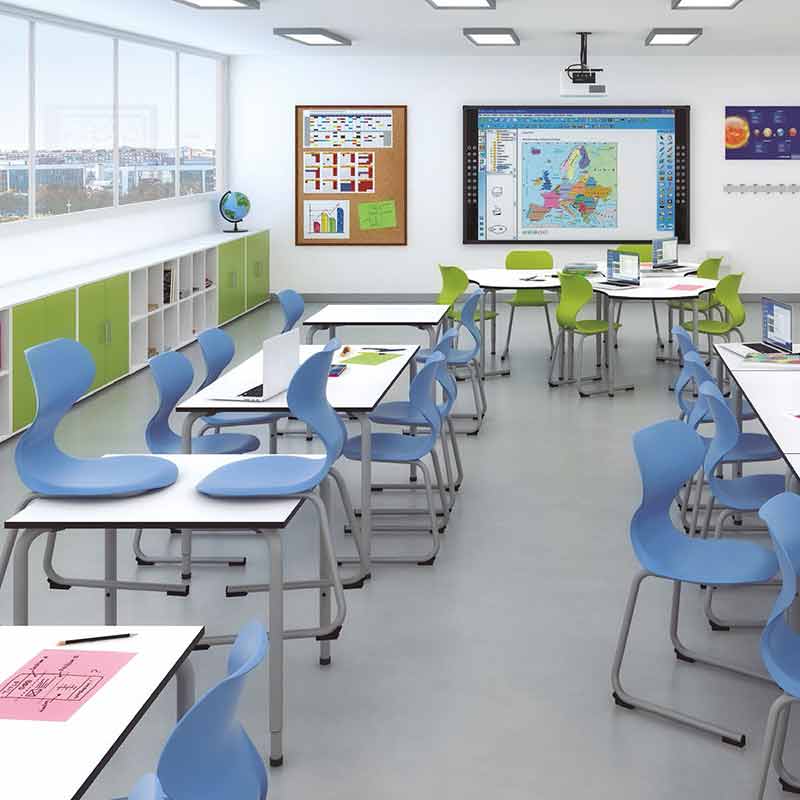 En nuestra página web, encontrarás diferentes modelos de mesas para aulas colaborativas y tradicionales. Como por ejemplo: