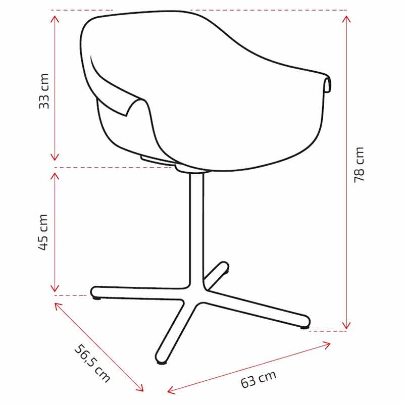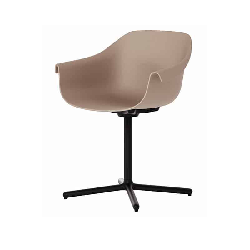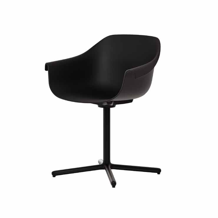 Silla Saki1 con estructura metálica con patas en forma de aspa y respaldo ergonómico con reposabrazos para un óptimo confort. Versátil y resistente.