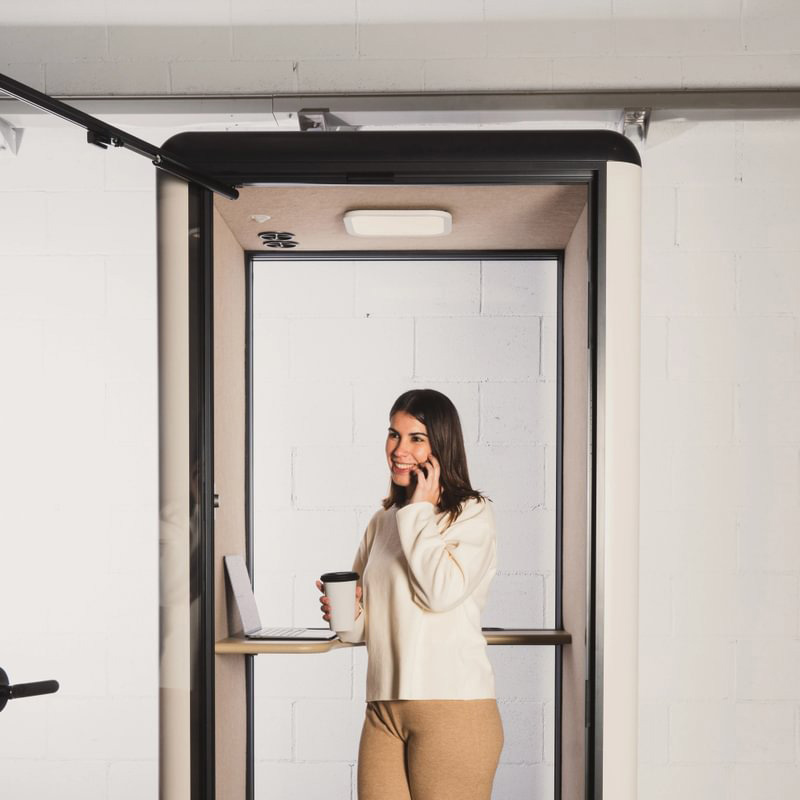 Cabinas de última generación de aspecto moderno, muy funcional, con 3 terminaciones de color  que se adaptan a cualquier entorno, además ofrecen un espacio tranquilo para realizar llamadas telefónicas importantes o trabajar en tareas que requieren concentración. Las cabinas acústicas Essen son la solución efectiva para controlar el ruido y mejorar la concentración en el espacio de trabajo.