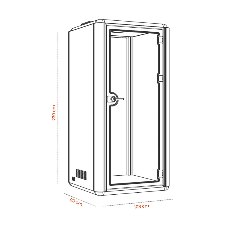 Cabina acústica/insonorizada vega box 1 diseñadas para ofrecer un espacio duradero, resistente y funcional. Ideales para optimizar la productividad en entornos profesionales, estas cabinas insonorizadas garantizan confort y privacidad.