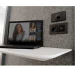 Características: Estructura robusta de acero y aluminio. Interior diáfano, equipada con sensor de presencia, iluminación LED, enchufe, USB de carga, ventilación y paneles acústicos de PET.