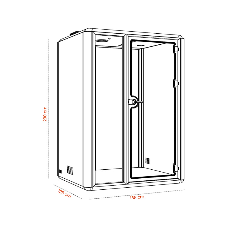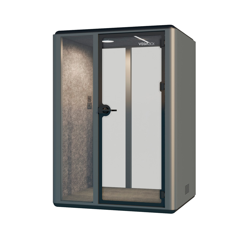Cabina acústica/insonorizada vega box 2  diseñadas para ofrecer un espacio duradero, resistente y funcional. Ideales para optimizar la productividad en entornos profesionales, estas cabinas insonorizadas garantizan confort y privacidad.