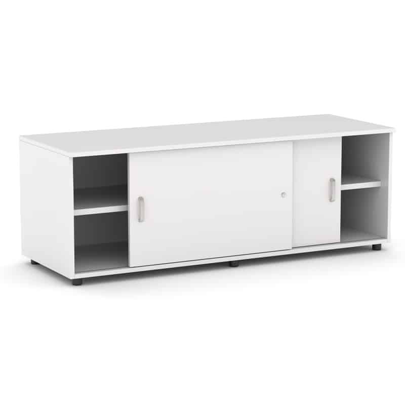 Mueble bajo 2 puertas correderas y estantes ofrece un amplio abanico de posibilidades de configuración, aportando así, infinidad de soluciones de almacenaje y archivo.