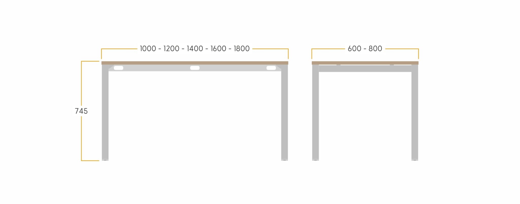 • Tapa de mesa de 25mm, de grosor y cantos en ABS de 2mm. unida a la estructura mediante tornillos.