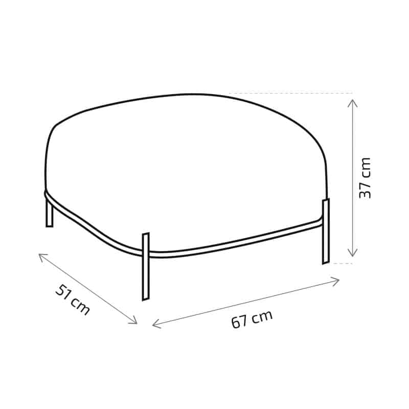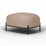 Puff Yoko tapizado y acolchado con estructura de madera. Patas de estructura tubular metálica