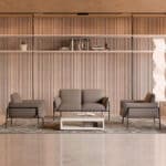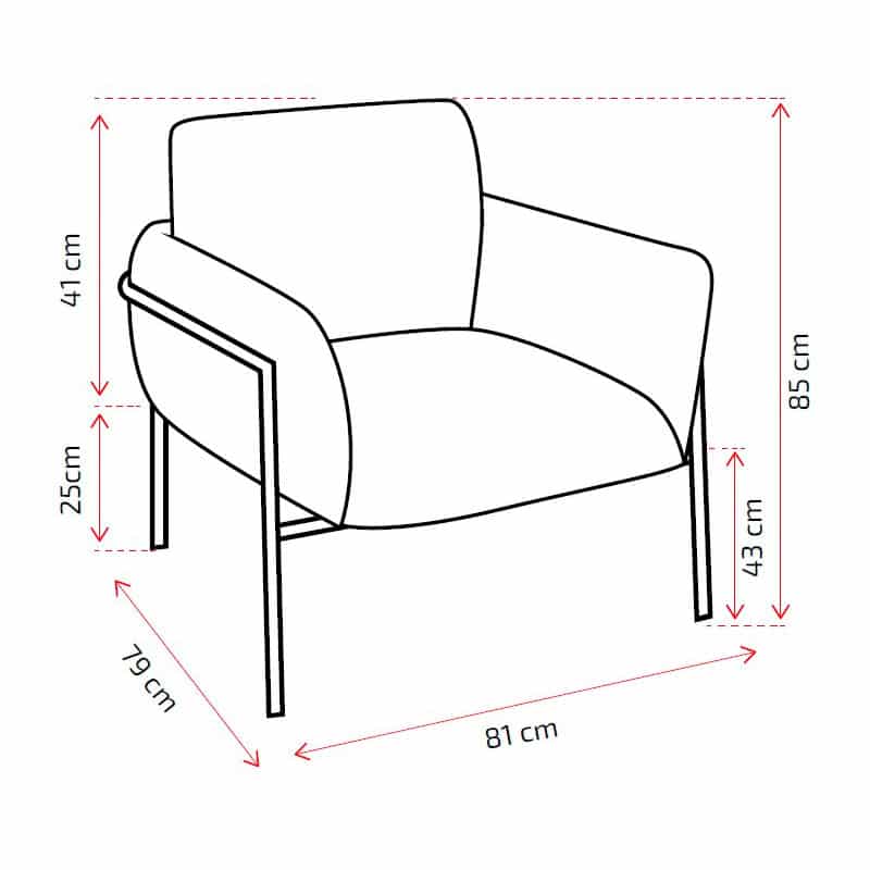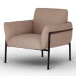 Sillón Tori1 tapizado y acolchado con estructura de madera. Patas de estructura tubular metálica