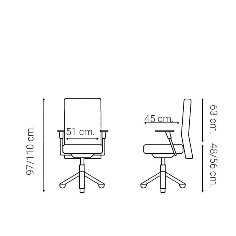 - 45cm fondo x 51cm ancho x 97/110cm altura. Altura del asiento 48/56 cm.