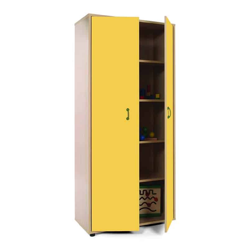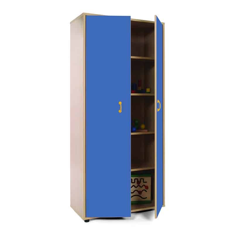 Este modelo de Armario alto 5 estantes, forma parte de nuestro catálogo de mobiliario escolar infantil. El cual está indicado para clases de Primaria.