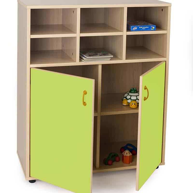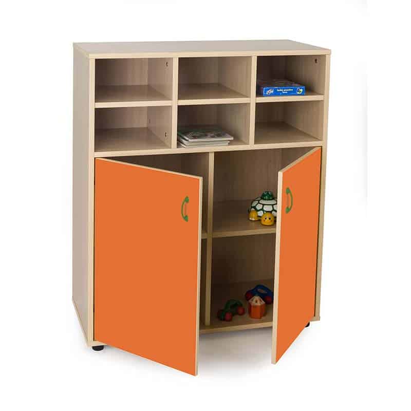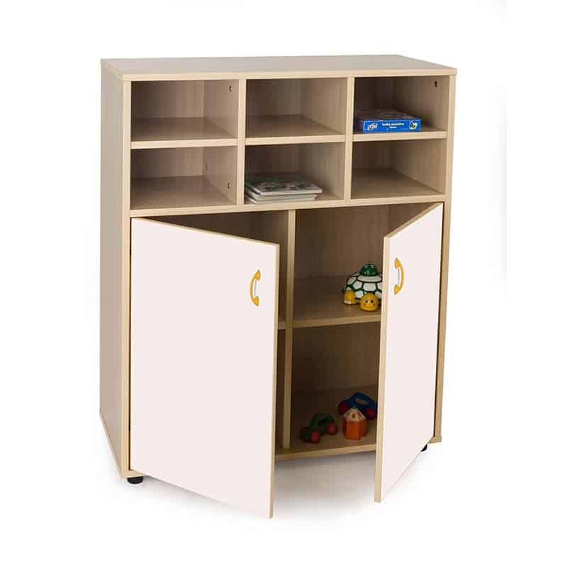 Este modelo de Armario casillero intermedio puertas bajas, forma parte de nuestro catálogo de mobiliario escolar infantil. El cual está indicado para clases de Primaria.
