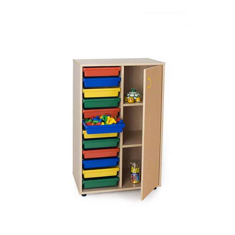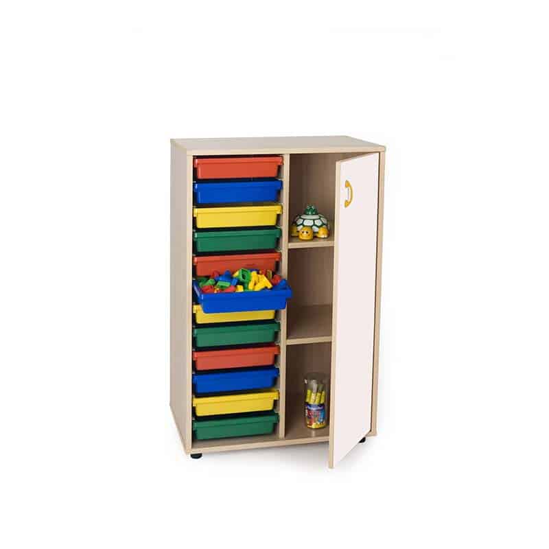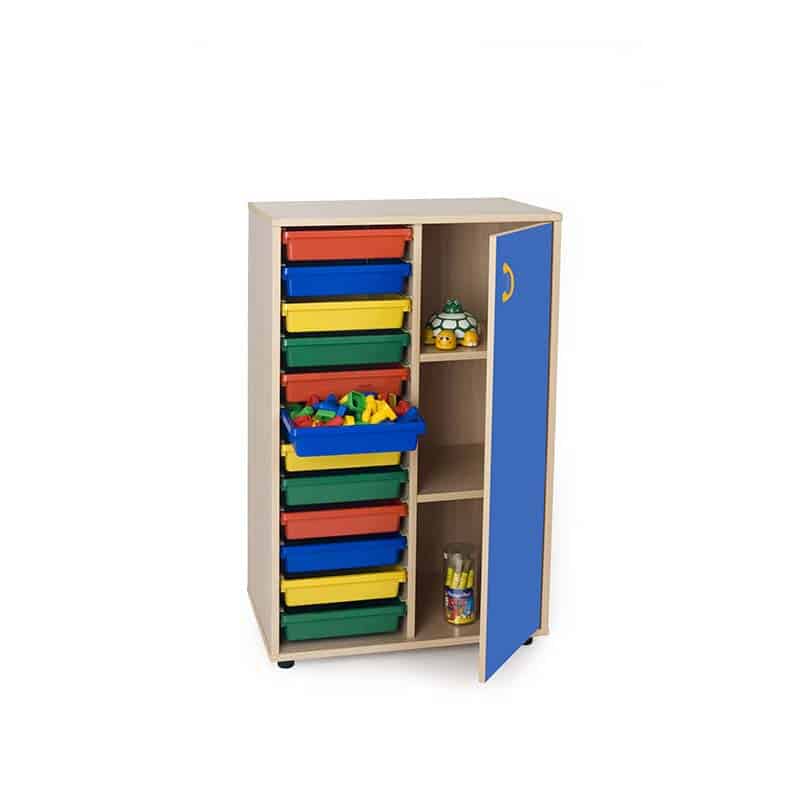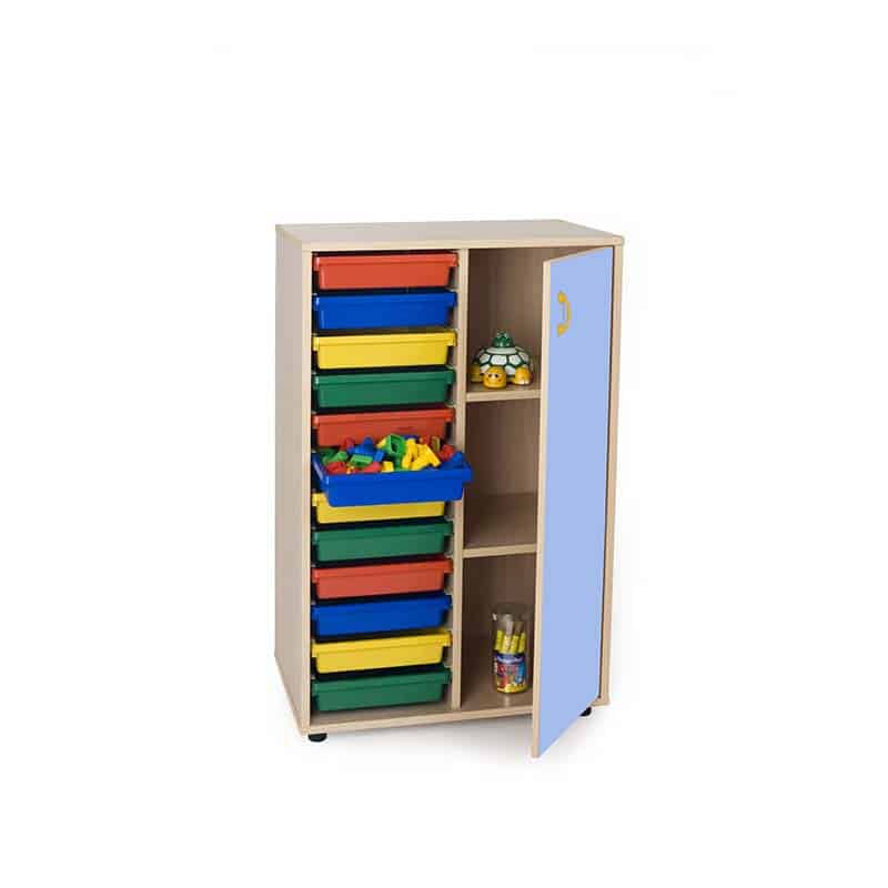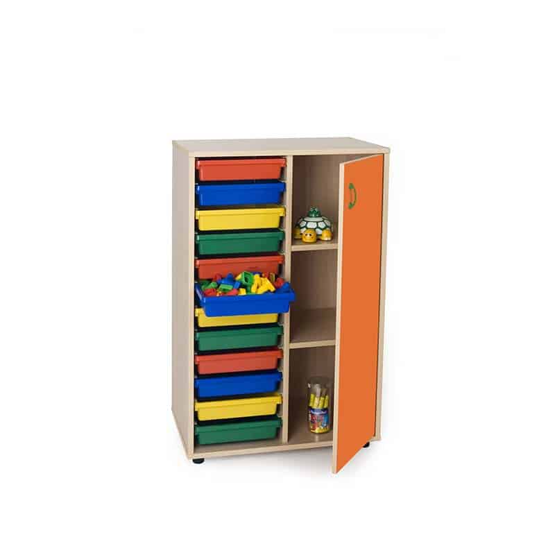 Este modelo de Armario gavetero intermedio, forma parte de nuestro catálogo de mobiliario escolar infantil. El cual está indicado para clases de Primaria.