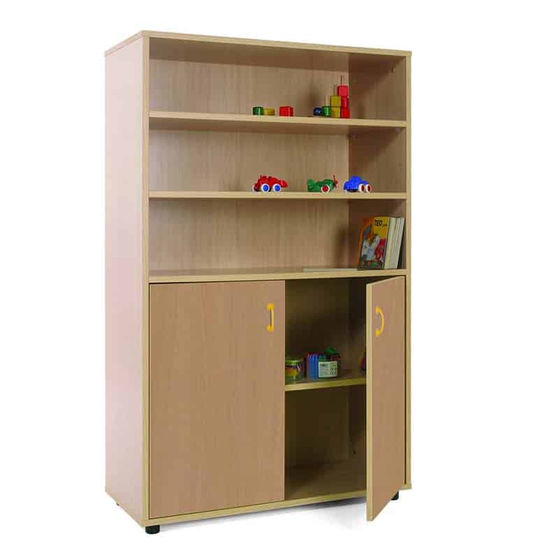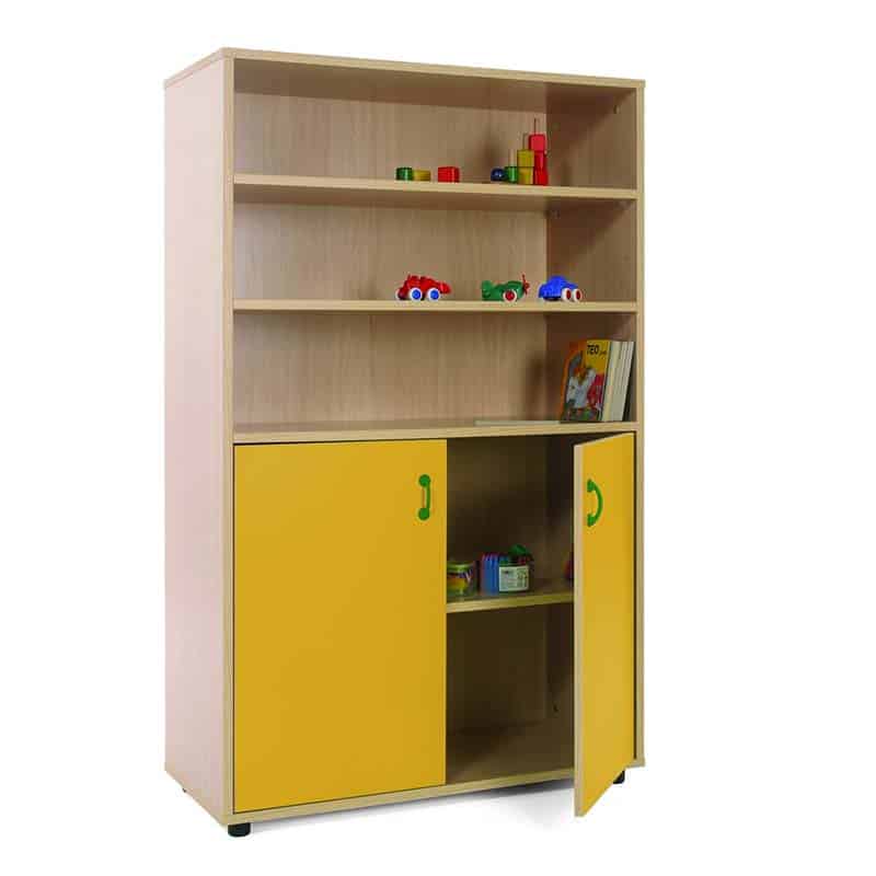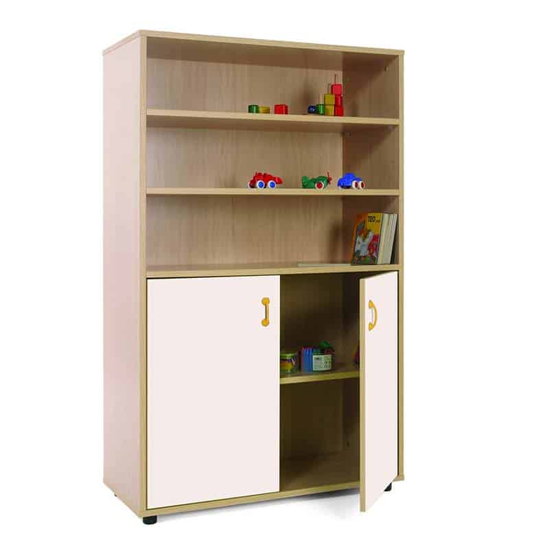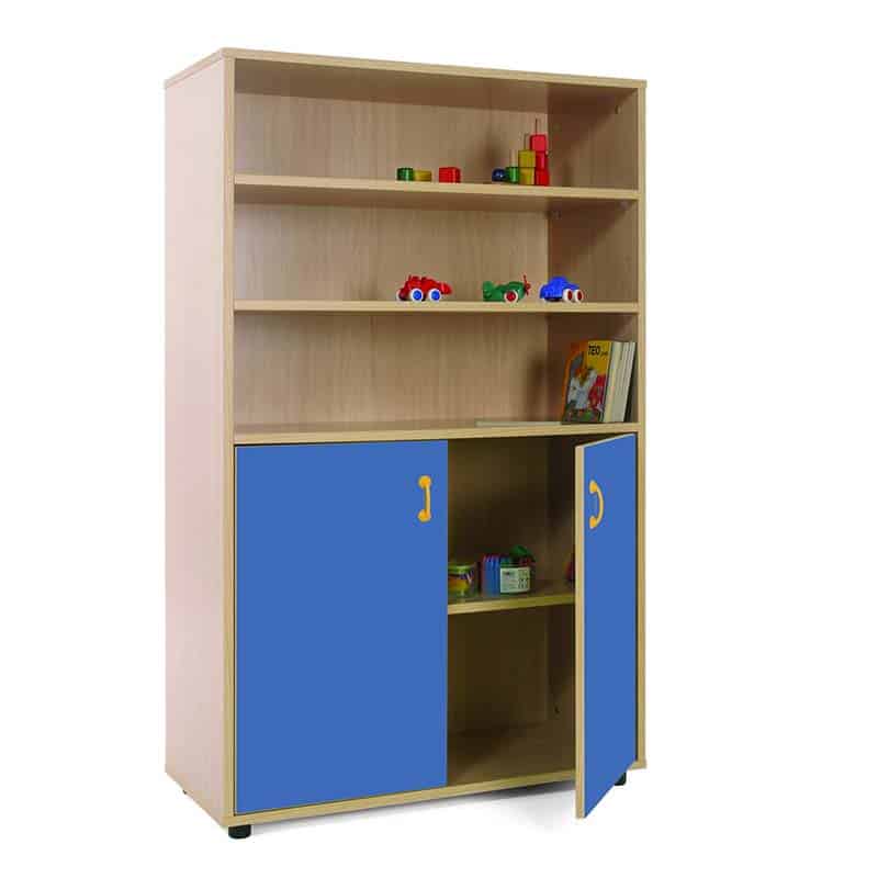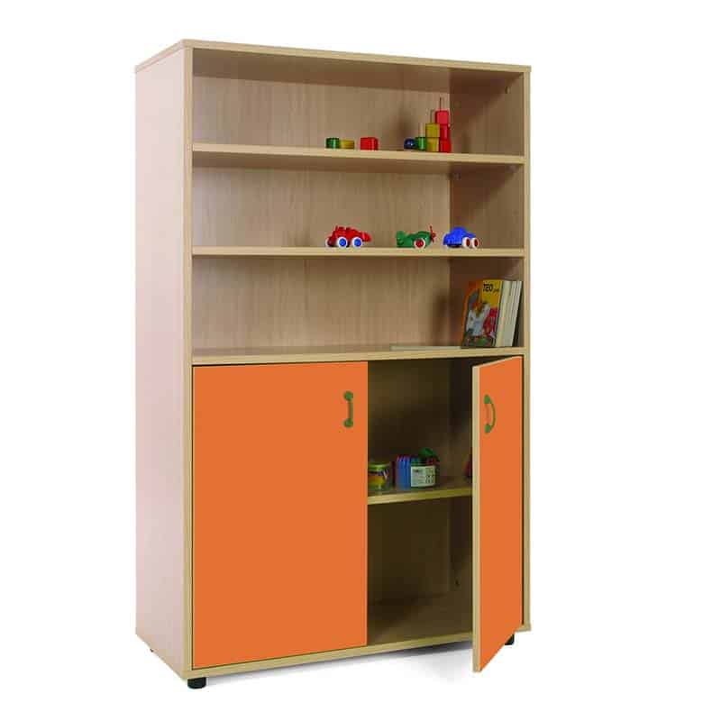 Este modelo de Armario medio puertas bajas, forma parte de nuestro catálogo de mobiliario escolar infantil. El cual está indicado para clases de Primaria.