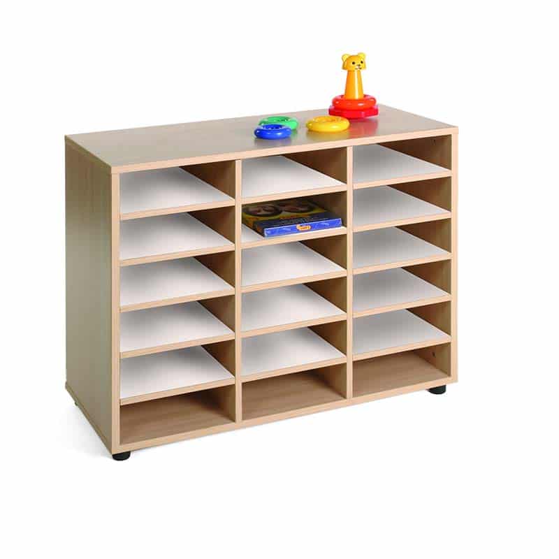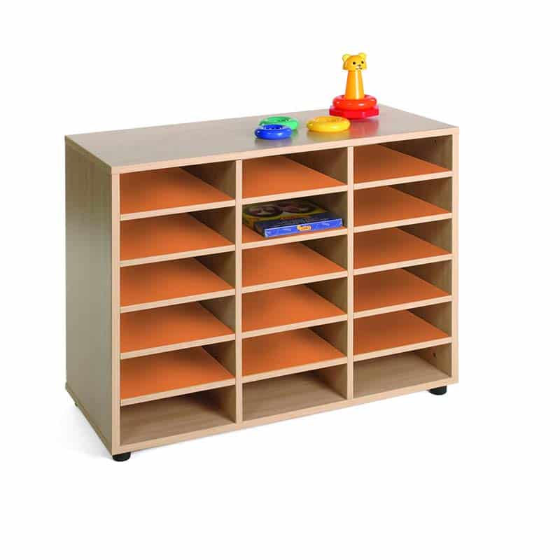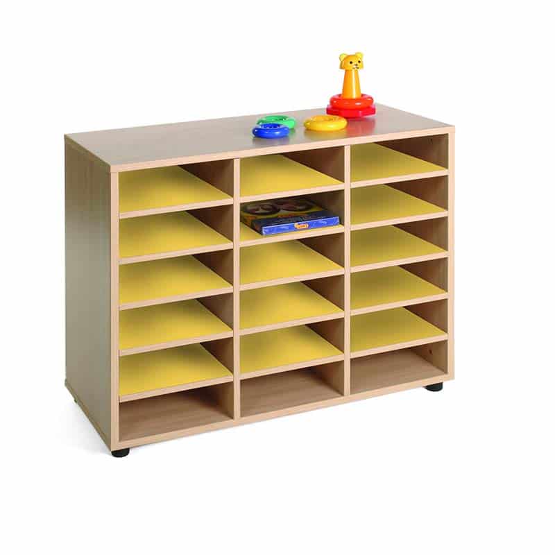 Este modelo de Casillero bajo 18 casillas, forma parte de nuestro catálogo de mobiliario escolar infantil. El cual está indicado para clases de Primaria.