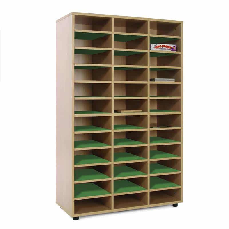 Este modelo de Casillero medio 36 casillas, forma parte de nuestro catálogo de mobiliario escolar infantil. El cual está indicado para clases de Primaria.