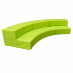 Grada escolar curva disponible en dos alturas. Formada por 3 módulos unidos entre si por sistema de velcro.