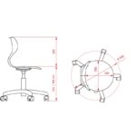 • Base giratoria y regulable en altura con pistón de gas, forma de estrega con 5 ruedas.