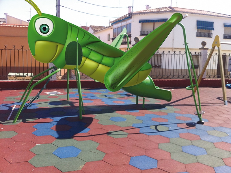 Este modelo de juego de exterior Saltamontes serie bichos, forma parte de nuestro catálogo de mobiliario urbano para centros escolares, institutos, colegios, universidades, parques infantiles, ayuntamientos, comunidades de vecinos, polideportivos…