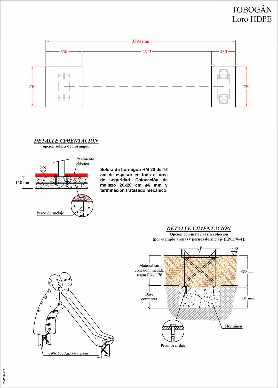 - Disponible para fijación en arenero o en suelo de hormigón.