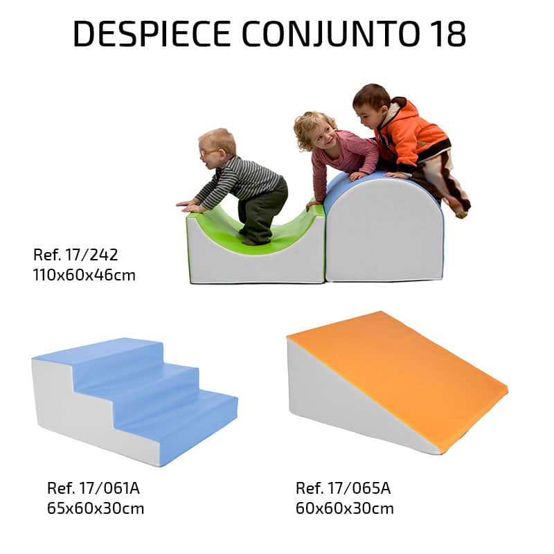 En nuestra página web, encontrarás diferentes modelos de conjuntos y piezas de psicomotricidad que puedes combinarlas con el módulo de psicomotricidad balancín grande para crear diferentes entornos en tus aulas infantiles. Como por ejemplo: