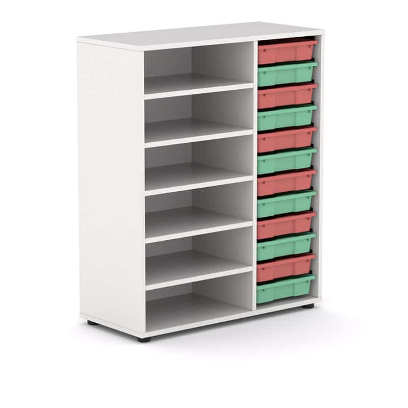 Combinaciones de alturas, modelos, colores hacen que la zona de organización en el aula esté completamente integrada en la misma. Por ello, elegir el mueble perfecto para nuestro centro, depende de las necesidades almacenamiento y espacio disponible en el aula.