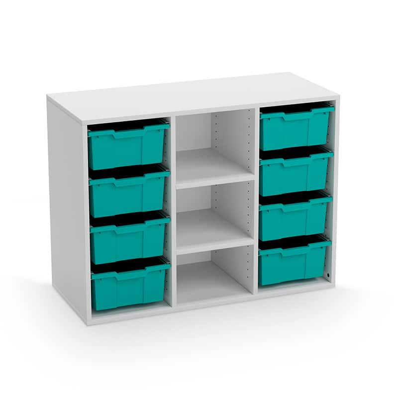 Combinaciones de alturas, modelos, colores hacen que la zona de organización en el aula esté completamente integrada en la misma. Por ello, elegir el mueble perfecto para nuestro centro, depende de las necesidades almacenamiento y espacio disponible en el aula.