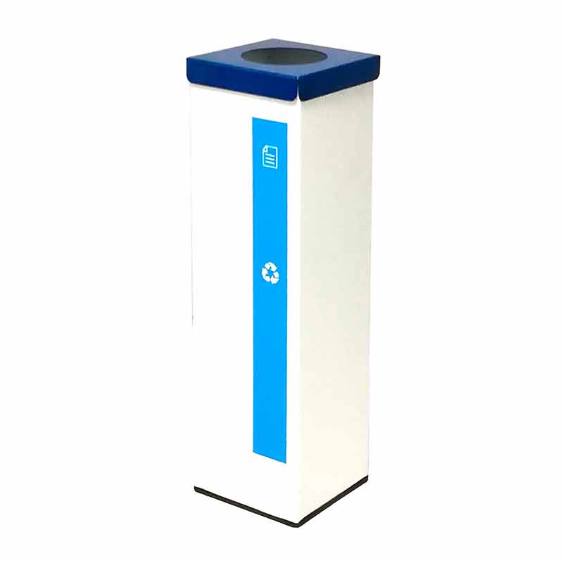 Papeleras amarillas para envases y azules para papel y cartón.