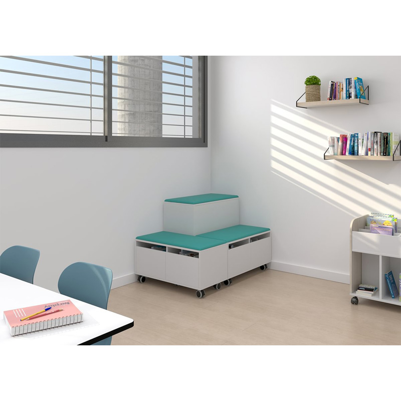 Las gradas y pufs escolares permiten que los estudiantes cambien de postura con facilidad. Así, se favorece un aprendizaje más activo.