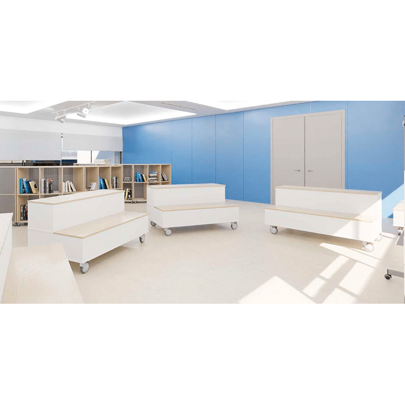 Además, las gradas para aula del futuro facilitan presentaciones, debates y dinámicas de grupo. De este modo, se fomenta la participación del alumnado.