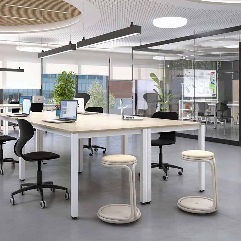 Diseñamos y equipamos centros educativos, colegios y universidades con mobiliario innovador para aprendizaje activo, espacios colaborativos y aulas flexibles.