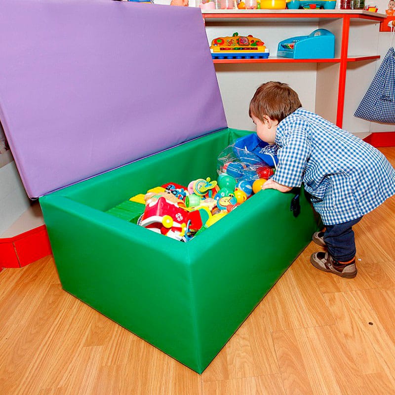 Complementos del aula, tales como baúles, bolas para piscinas de bolas, juguetes….