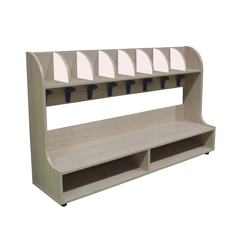 Así como, perchas y estantes para mantener el aula escolar colocado.
